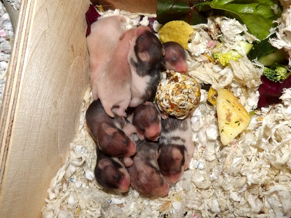 Bonnie Hamster Paws (stříbrná šedá?, želvovinová, kr.) x Alec of Silver freedom (modrý, páskovaný, dl.)